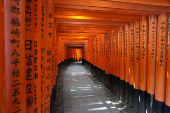 Wir spazierten den Hain entlang und begaben uns dann auf den Weg zu meinem absoluten Lieblingsort in ganz Japan. Nachdem ich einmal den Film „Die Geisha“ sah, hatte ich mir vorgenommen irgendwann dorthin zu kommen – zum Fushimi Inari-Schrein. Er ist der bedeutendste Shinto-Schrein, welcher zu Ehren der Göttin Inari erbaut wurde. Auf dem Gelände sind zahlreiche Fuchsstatuen zu finden, da diese als Nachrichtenübermittler Inaris fungieren. Ein beliebtes Ziel für Touristen ist er wegen seiner Alleen aus hunderten von Torii.