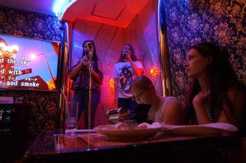Nach ausführlicher Begutachtung Tokyos von oben machten wir uns auf den Weg in Richtung Karaokebar. Hier konnten wir eine „Box“ beziehen, in der unsere Gruppe für sich war. Von alten bis neuen, japanischen und sogar deutschen Songs war alles dabei.